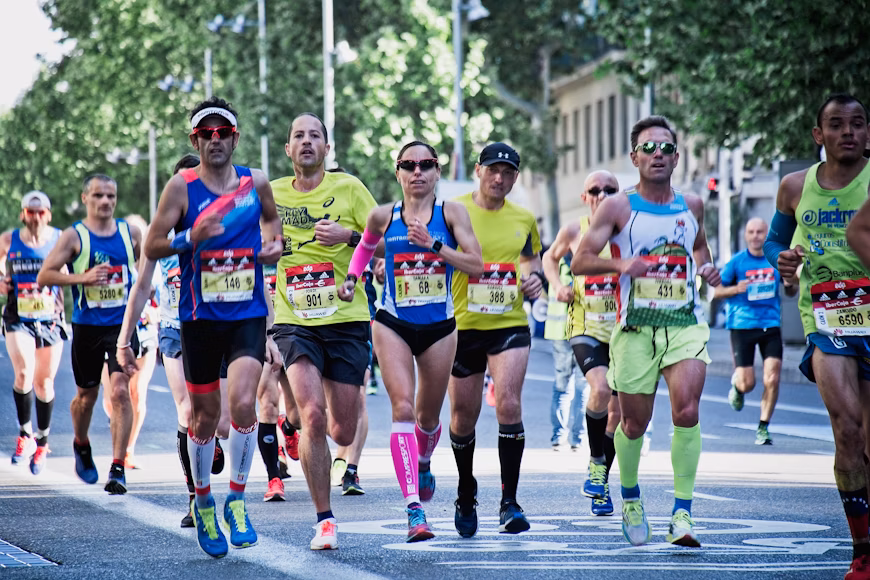 兄弟二人で、息を合わせてブラインドマラソンに取り組む姿。